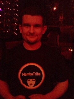 Извините за качество, в Карме в красном цвете, на мой мобильник лучше не получается) :( Интерес вызывают парные футболки (М+Ж), а если целая группа прийдёт с с одним лого, то подумают, что МамбоСекта. :) П.С. для настроения: Один парень запутался в названиях прочитал 'MamboTribe' как 'МamboTime'. Спросил - это Кондрашова на футболке? Я даж растерялся, но сказал что это разные темы.. (надо было ответить, что Диана :D ). |
